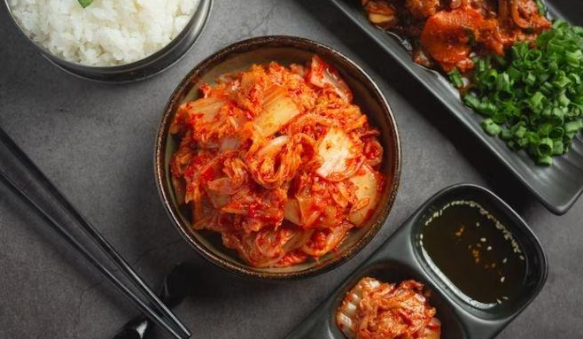 Kimchi adalah sayuran fermentasi pedas, biasanya kubis atau lobak, yang menjadi makanan wajib di setiap meja makan Korea.